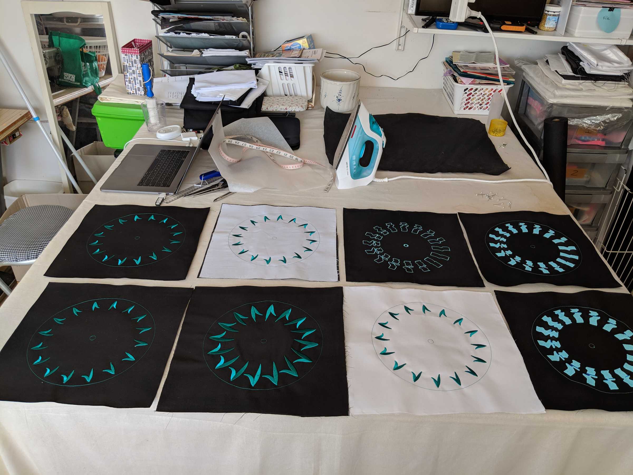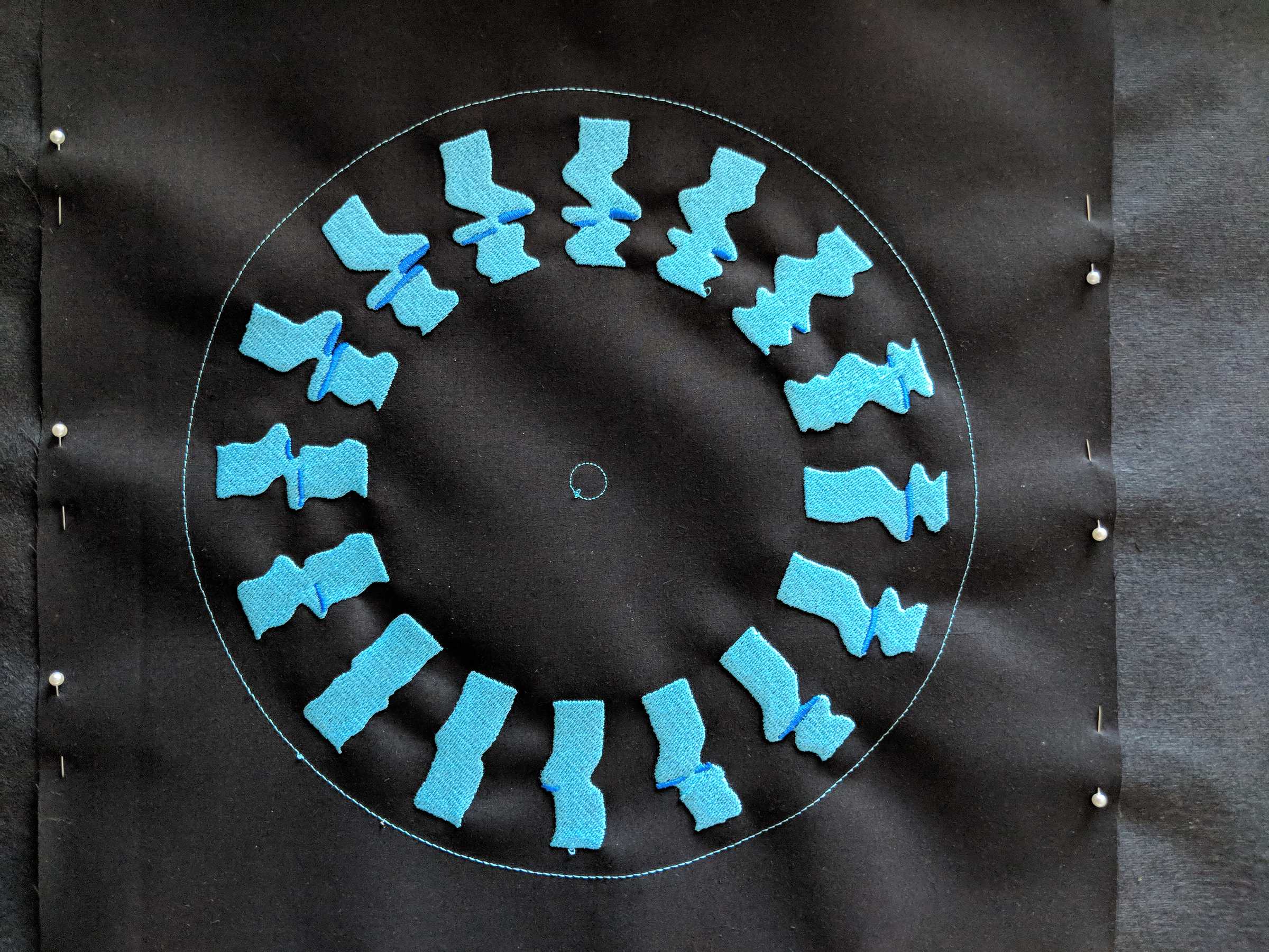 It was at about this time that I began some proper experiments with real fabric and embroidery, and given my history of using phenakistoscopic layouts, I thought it might be worth a try.